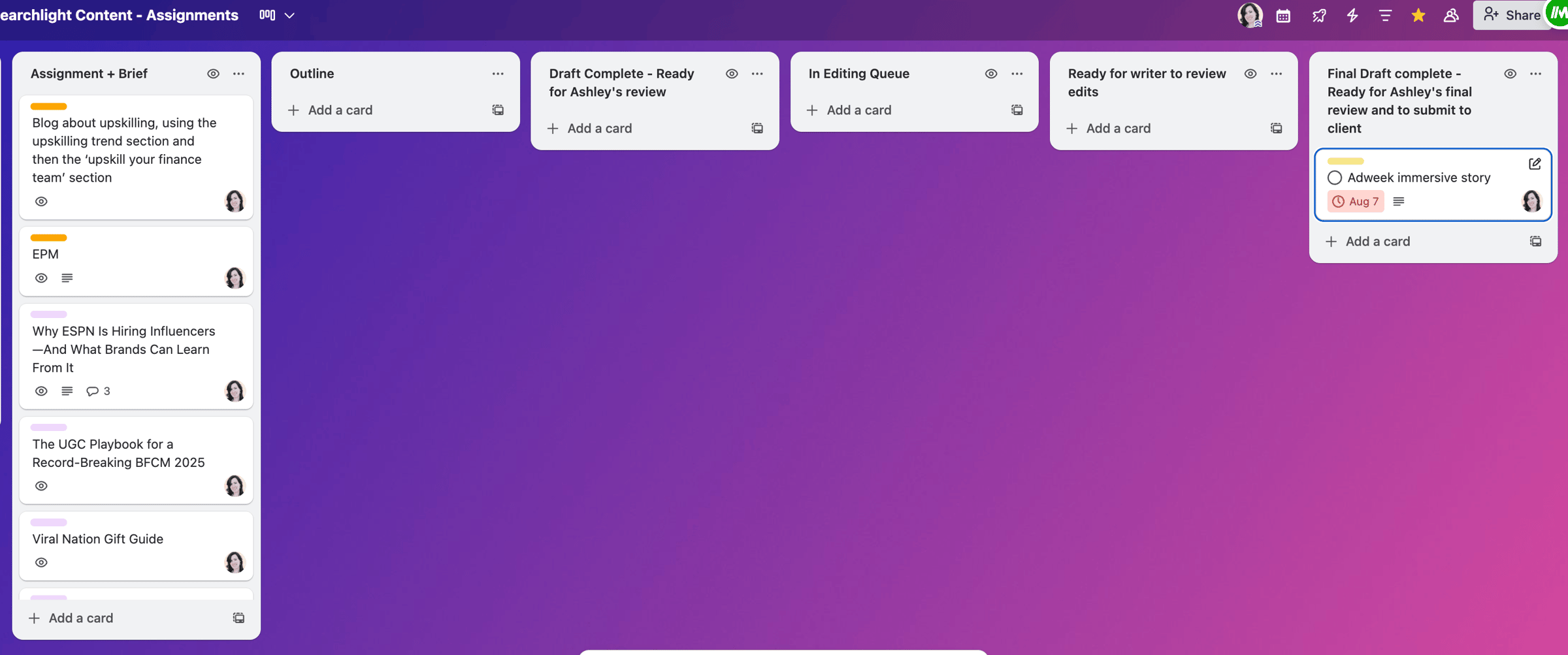 Once a quarter, schedule a systems cleanup day to update templates, tools, and trackers., sign up, enjoy! Here's a little challenge: Get organized so you can guarantee you'll never miss a deadline. Try out Moxie and Monday to get your ish together. The content professional who delivers work on time is ALWAYS going to get hired. Thanks, Ashley PartnerSupport Content Connect: Every click supports this newsletter. Expert Interview | Althea Storm1/ How did your career in content marketing begin, and what inspired you to specialize in B2B and SaaS writing? I wrote my first short play when I was eight years old, and since then, I’ve always written something, be it plays, short stories, long stories, or poems. But writing didn’t become a career until much later. I didn’t grow up with much, and when I graduated high school at 15, I became responsible for taking care of my family: my elderly, sick mother, my younger brother, and myself. I didn’t have a college certificate, and the physical jobs available paid around $37–40 a month, which wasn’t enough. I got a partial university scholarship, but I couldn’t attend university because I was my mum’s caregiver, so I had to figure out how to earn a living from home. I tried blogging, surveys, and transcription, but nothing stuck. Then one day it hit me: I’m a writer. Maybe I can make some money writing. I started learning from freelancers online and applied to every job I could find on job boards, LinkedIn, and even Facebook. I was constantly rejected for almost two years because I had no portfolio or real experience, but I kept going. In April 2021, when I was 17, I saw a job listing on ProBlogger from Alex Birkett (of Omniscient Digital) looking for a MarTech writer for his personal website. I had no idea what “MarTech” meant, but I applied anyway. The only samples I had were listicles from a small beauty blog I ran on WordPress, so I sent those. Ten days later, Alex emailed me and asked if I could write a test article on marketing automation tools. I was shocked, but I immediately got to work. I read everything I could about marketing automation, wrote the piece in three days, and submitted it. He liked it, paid me $300 for it, and that became my first-ever B2B SaaS article. I knew there was much to learn, so I immersed myself in blogs from Ahrefs, SEMrush, Animalz, and Backlinko. The more I learned, the more fascinated I became with B2B SaaS: how these tools worked, how companies grew, and how content could drive business growth. I kept applying to other jobs with the new bylines I earned on Alex’s site, and over time, that opened doors to work with companies like HubSpot, Thinkific, and Zapier. That’s how I found my way into B2B and SaaS writing: part survival, part curiosity, and part falling in love with an industry I never planned to be in. 2/ What’s your approach to creating long-form, data-driven content that connects with both search engines and real readers? My approach differs slightly based on how familiar I am with the topic. If I already have personal or professional experience with it, that informs the angle I take. I think about what I already know, the real-world challenges I’ve seen, and the narrative that ties it all together. Then I look at the top-ranking articles on Google to understand the structure that Google likes and identify any gaps. If it’s a topic I’m not familiar with (which is often the case in B2B), I spend a lot more time learning. I read the top-ranking articles not just to see their structures, but to understand the topic itself. I jot down notes, identify the essential sections, and check the People Also Ask box for additional questions to cover in the piece. I also go on Reddit to see what people are saying about the topic. Reddit is one of my favorite sites for research because there’s always honest discourse and real user pain points, which helps me shape the content to be more relevant and practical for readers. From there, I look for the most recent data and reports on the topic. I let the data guide my thesis, not the other way around, so I form my narrative based on what the numbers say. To make the content tangible, I look for real-world examples. Sometimes that means testing tools myself and taking screenshots of what I’m doing. For opinion-driven content, I often gather insights from subject matter experts through platforms like Featured or Help A B2B Writer. I sift through the responses and choose the quotes that genuinely add clarity and depth. Usually, the quotes align with the stats I gather from the report, but sometimes, I find an interesting contrarian angle I explore in the piece. Once I’ve done the research, the writing becomes much easier. I focus first on search intent because I’ve found that, if I meet the reader’s needs, the keywords usually fall into place naturally. However, if the client uses Surfer or Clearscope, I often have to go back and add some extra keywords and tweak a few sentences. Once the keywords are in place, I add internal (and external) links, polish the formatting, write the slug and meta description, and then send it to my editor. Most of the work happens before I write the first sentence. Once the research is right, the narrative almost builds itself. 3/ What are the biggest lessons you’ve learned from working with brands like HubSpot, Zapier, and Thinkific? I’ve learned so much from working with these brands, but here are the ones that have had the most impact on how I approach my work: